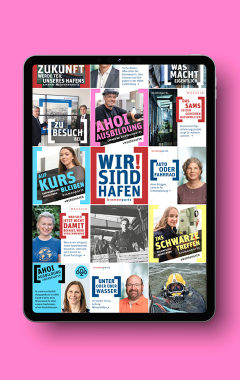 Im Rahmen eines erfolgreichen Pitchs entwickelte ich eine neue inhaltliche und visuelle Strategie für den Karriere-Kanal »talente_bremenports« auf Instagram. Der Auftritt richtet sich an bestehende Mitarbeiter, Auszubildende und potenzielle Bewerber und setzt auf ein einheitliches, authentisches Bild- und Farbkonzept, das die Arbeitgebermarke stärkt.